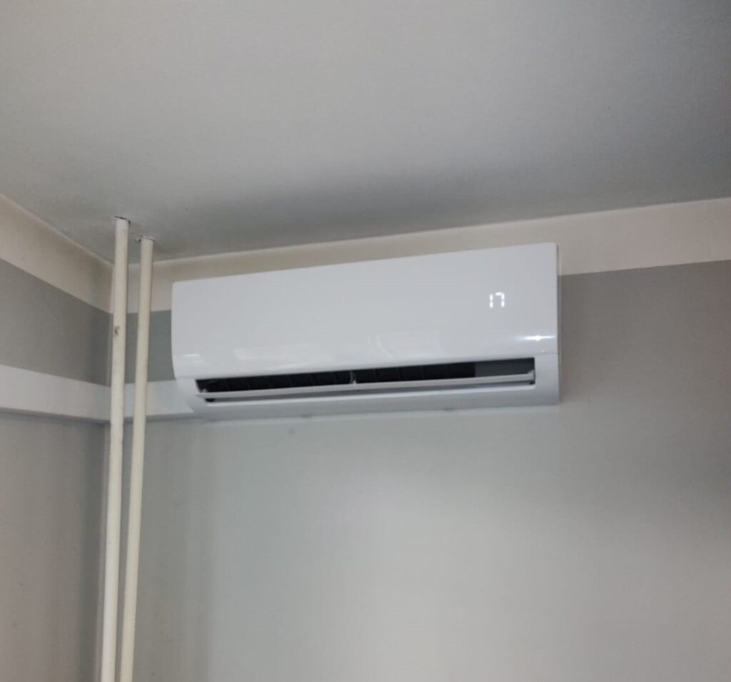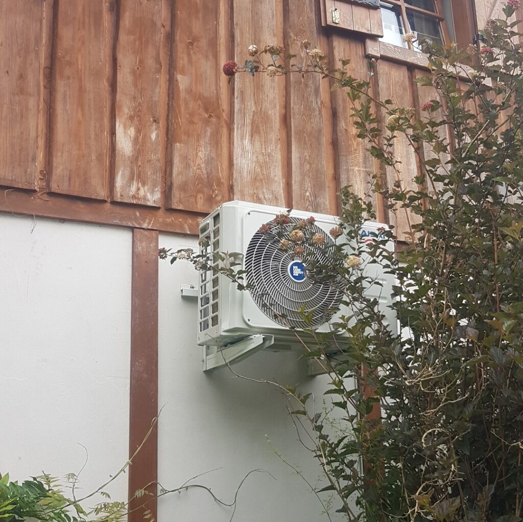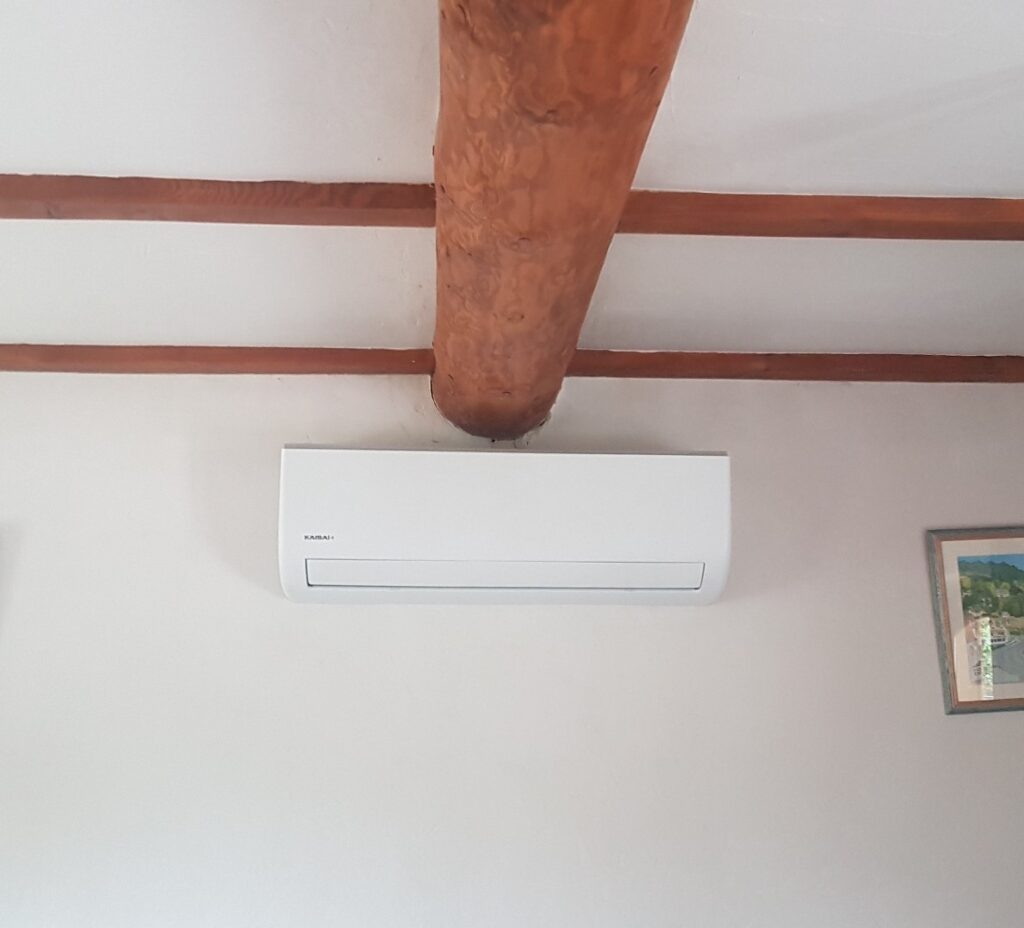 Niewielka instalacja klimatyzacji typu Split w domu rekreacyjnym.