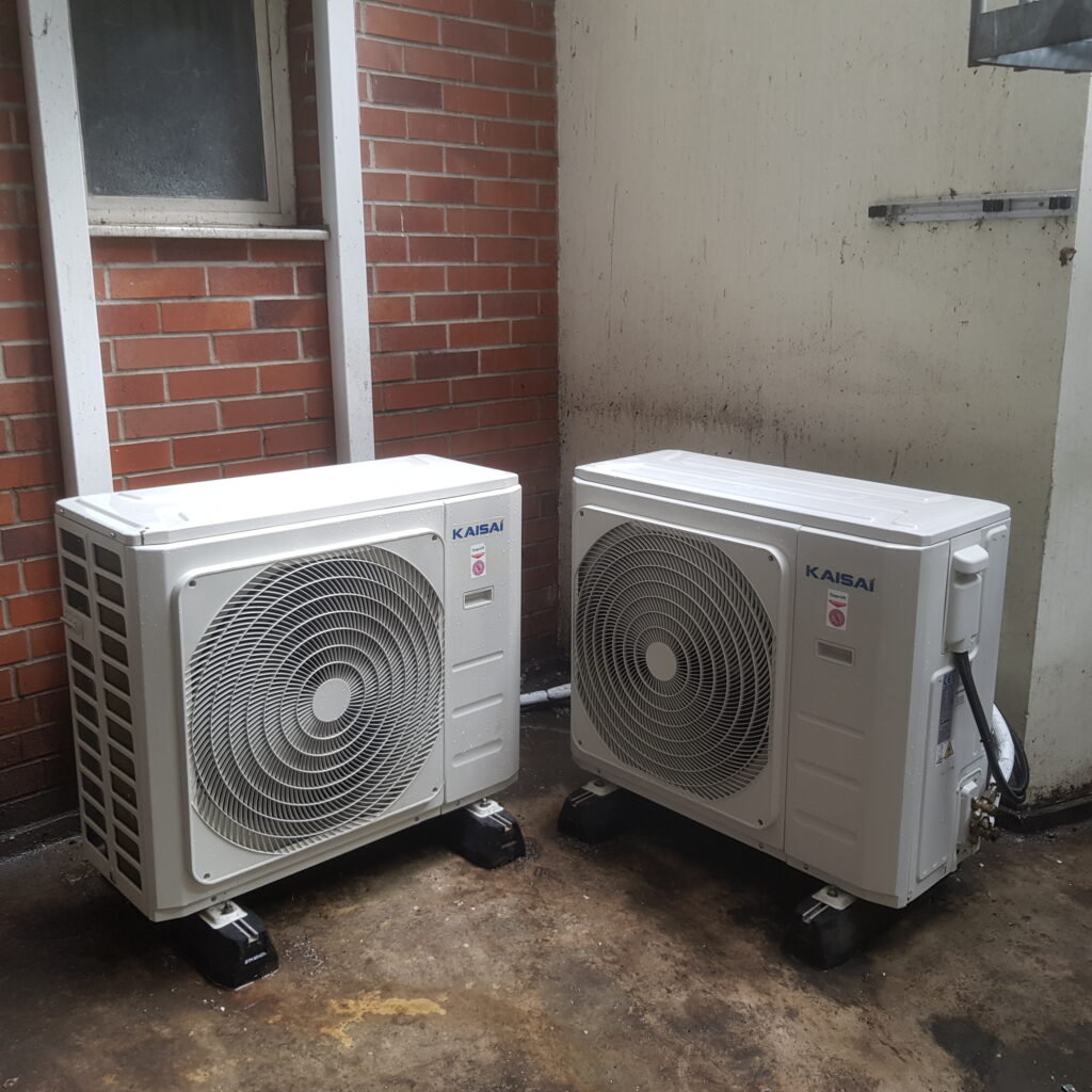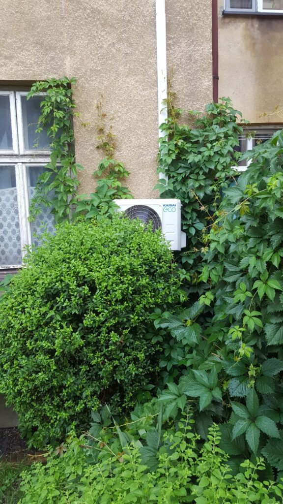 Dwie jednostki zewnętrzne Split w dwóch mieszkaniach kamienicy wielorodzinnej.